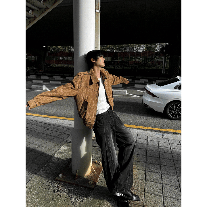 A91 霧感焦糖麂皮短版外套 (咖 黑)
