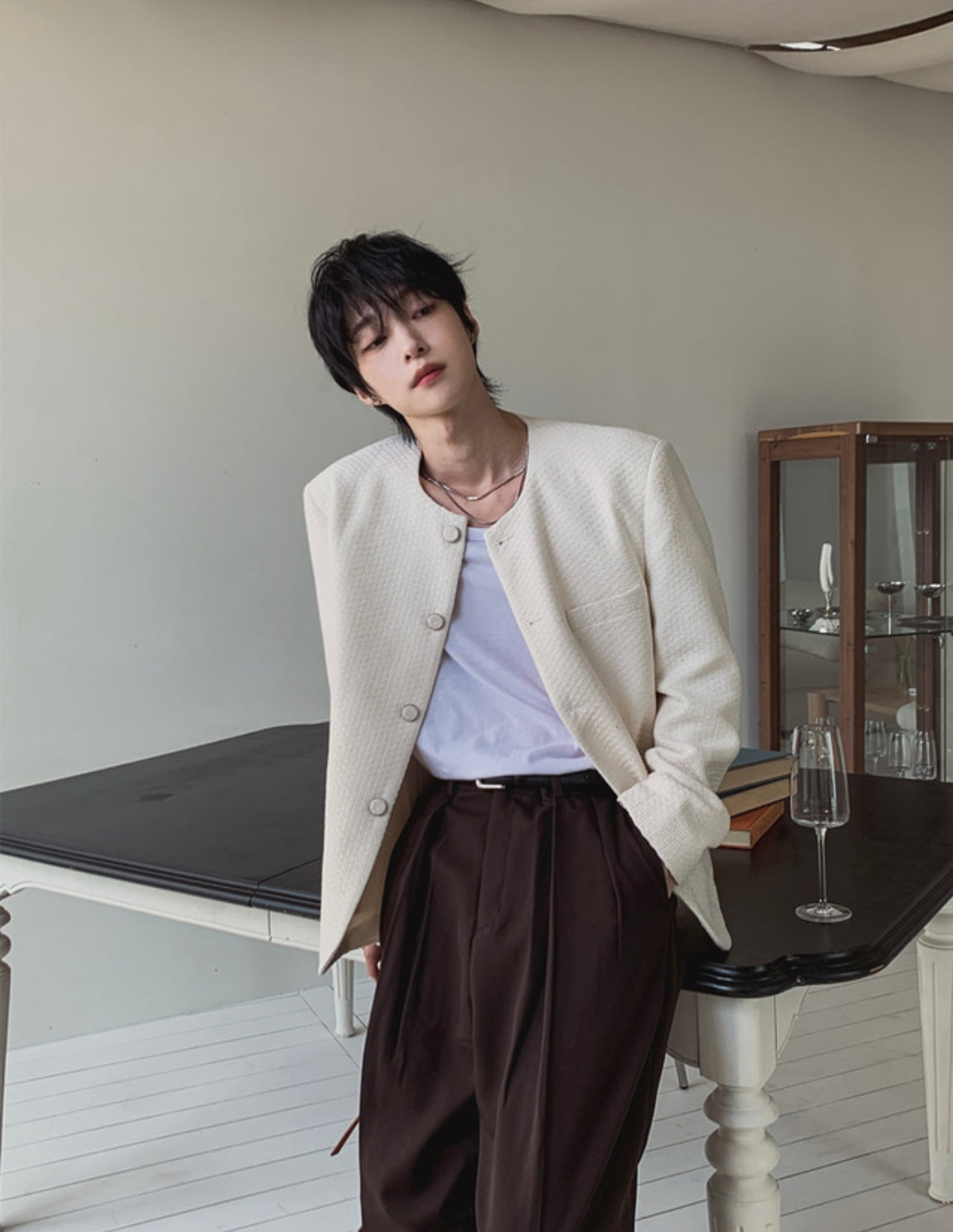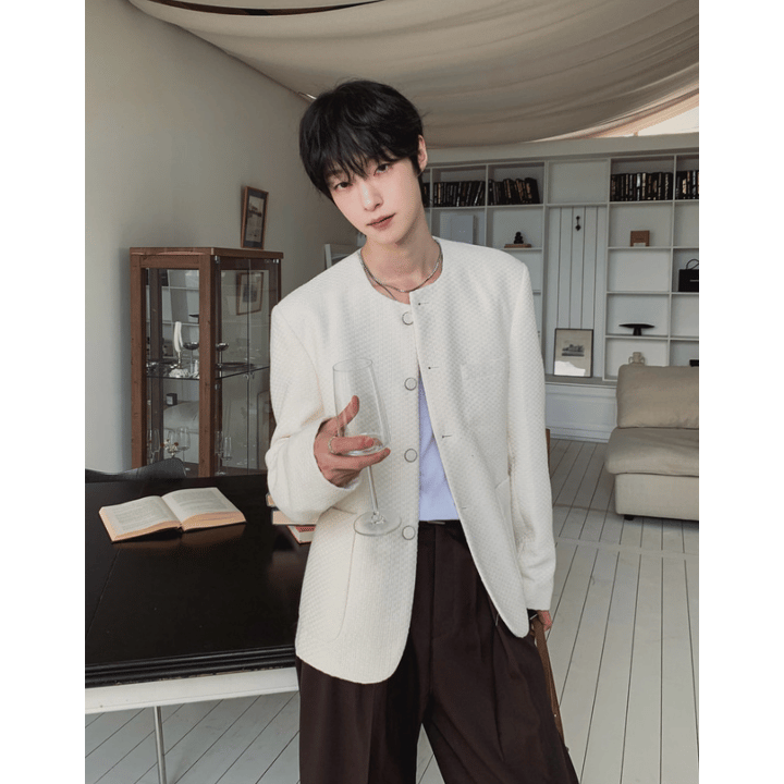 A96 韓系重工藝織紋夾克 (象牙 黑)