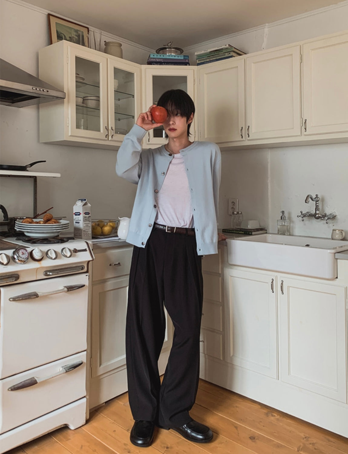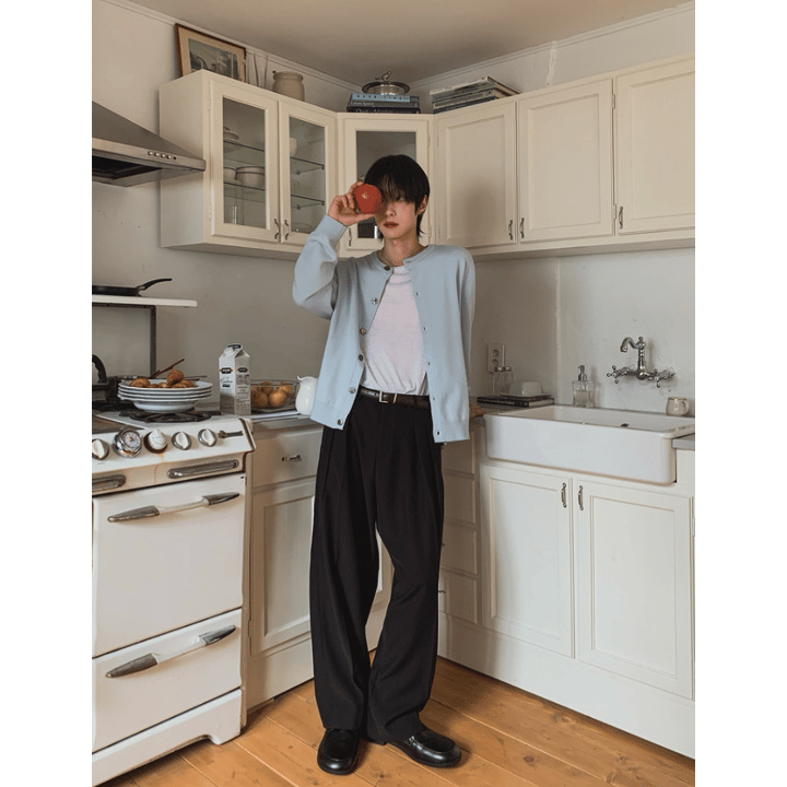 這款西褲以雙褶設計為亮點,視覺上自然延伸腿部線條,修飾身形又不失立體感,高腰搭配寬鬆剪裁,讓整體比例更俐落,活動起來也相當自在,垂墜布料讓褲管落地時不會顯得呆板,反而帶出一種慵懶的氣質,很適合搭配簡單襯衫或針織衫,無論是輕鬆穿搭還是微正式感的打扮,都能輕鬆駕馭。