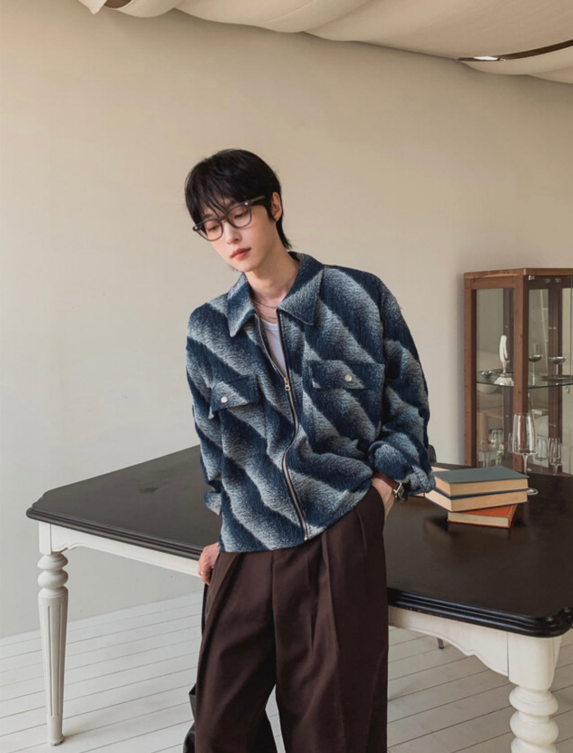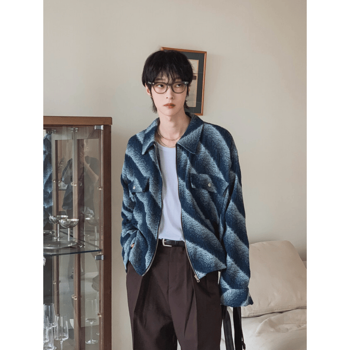 A105 漸層斜紋短版外套 (藍 黑)
