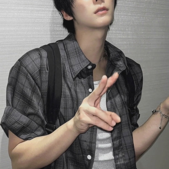 這件短袖格紋襯衫帶有微垂墜感,材質輕透,穿起來不悶熱,搭配背心、內搭或打開當罩衫都很隨性自然。顏色霧感不過頭,低調但有態度,整體風格街頭中帶點日系鬆弛感,耐看又不無聊。