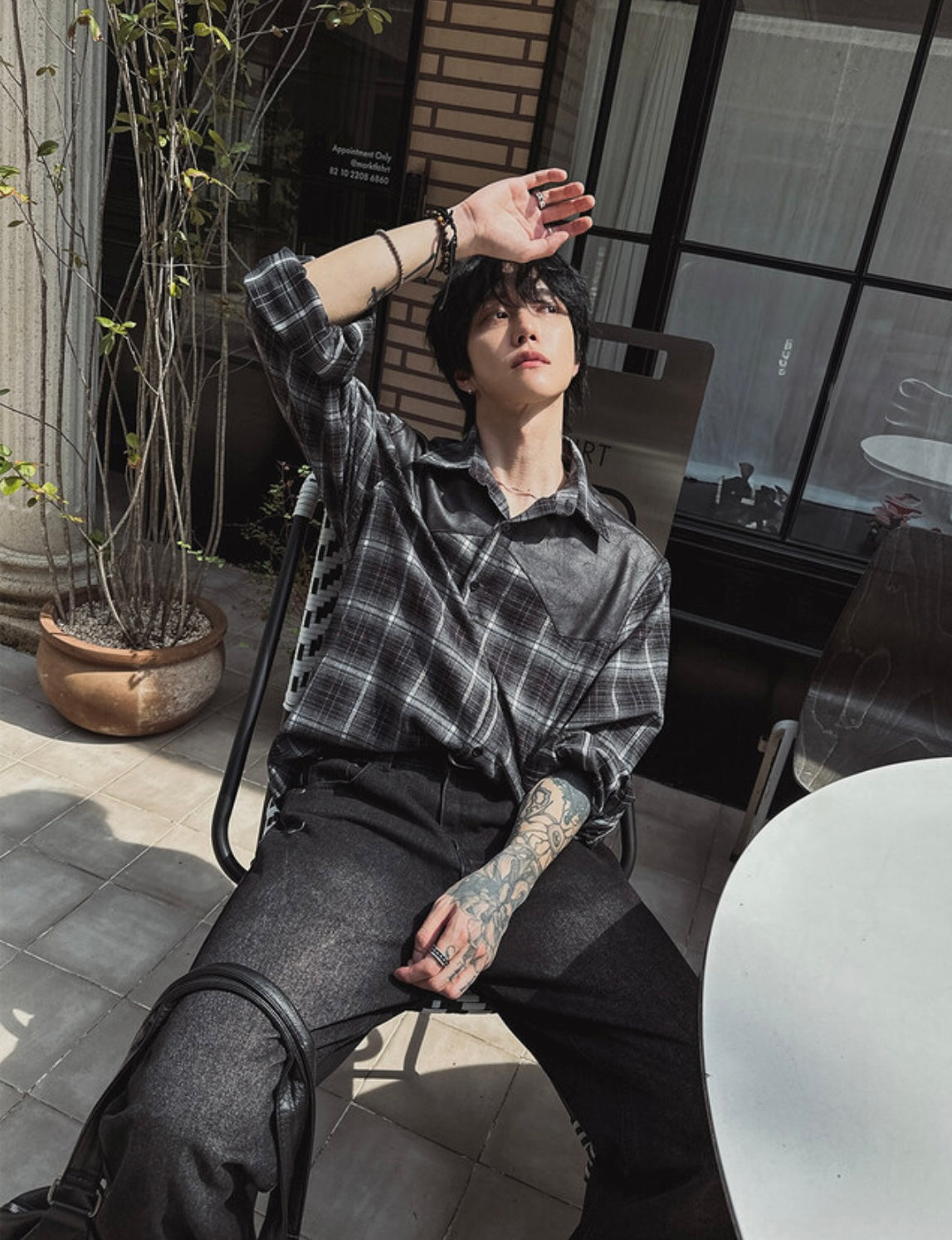 這件襯衫的設計重點在於異材質與格紋的拼接層次,整體視覺上像是「襯衫上的夾克」,上身部分以皮革質地拼接,搭配下半部柔和刷色的格紋布料,打造濃厚的復古調性與輕西部氛圍,比起常見的格紋襯衫,這款更加俐落、不羈,搭配素T或單穿都能撐起造型,下擺採無內裡設計,視覺更輕盈,不會過度厚重,適合秋天過渡季節穿著,也能作為薄外套。