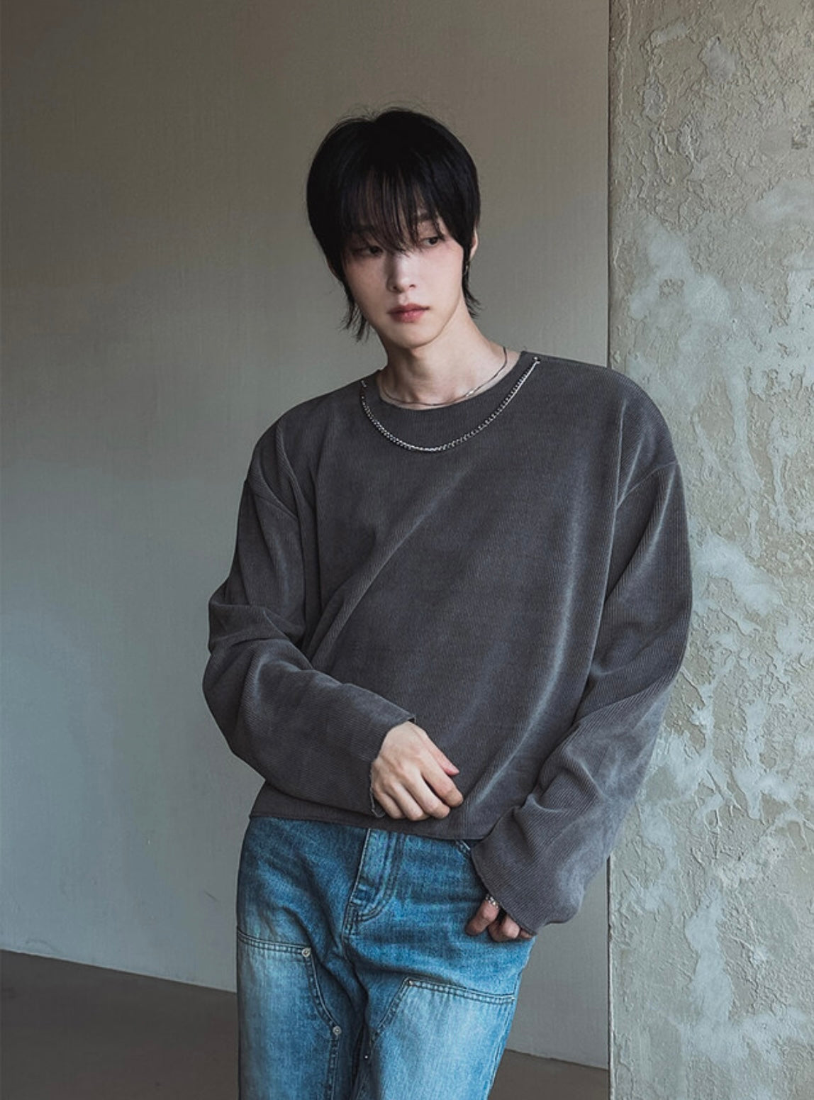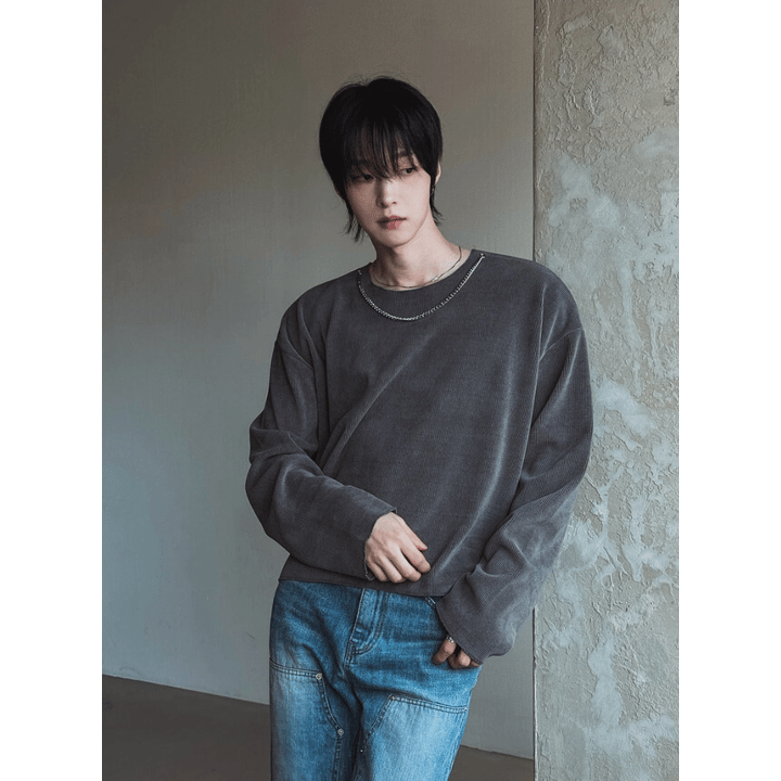 低調中帶點冷感質地,搭配細緻的羅紋紋理,穿上就有自然的氛圍感,寬鬆落肩設計讓整體線條更慵懶隨性柔軟,右肩上的小釦設計能拆卸項鍊,實用又加分,不用再額外配飾也能完成造型,適合搭配牛仔褲或寬褲。