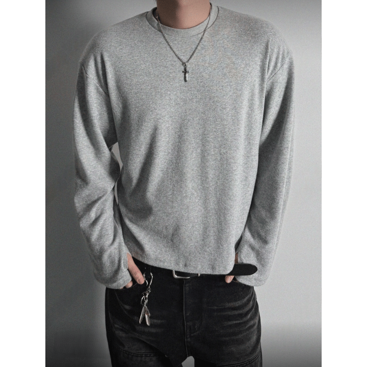 高實穿度的基礎長袖,版型寬鬆但不垮,肩線自然下落修飾身形,內裡刷毛,手感細緻,保暖不厚重,單穿就有份量,布面平整有垂度,不易顯皺,搭寬褲或工裝褲都順,日常通勤,換季疊穿都適合。