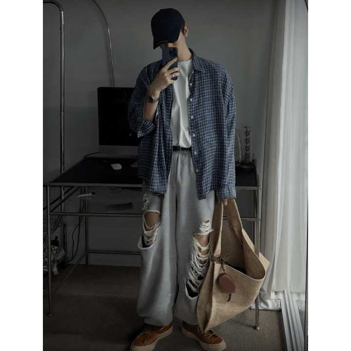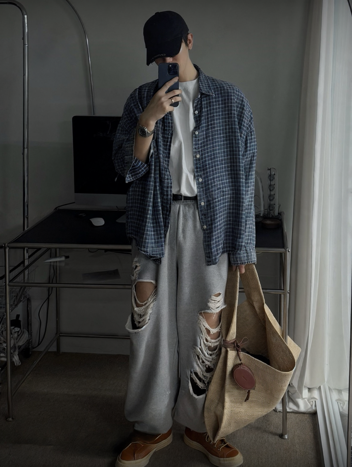 寬鬆剪裁搭配誇張破壞設計,營造慵懶又叛逆的秋日氛圍。選用厚實棉料,穿起來有挺度但不厚重,內裡柔軟親膚,適合季節交替時穿搭。無論搭配素色上衣還是格紋襯衫,都能輕鬆駕馭街頭感。